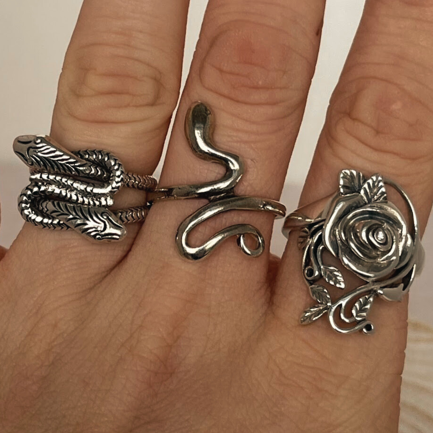 Each piece is either hand-selected, vintage or made in-house using solid gold and sterling silver. Designs are chosen and tested for wearability, balance, and longevity, with a focus on materials that hold integrity over time.