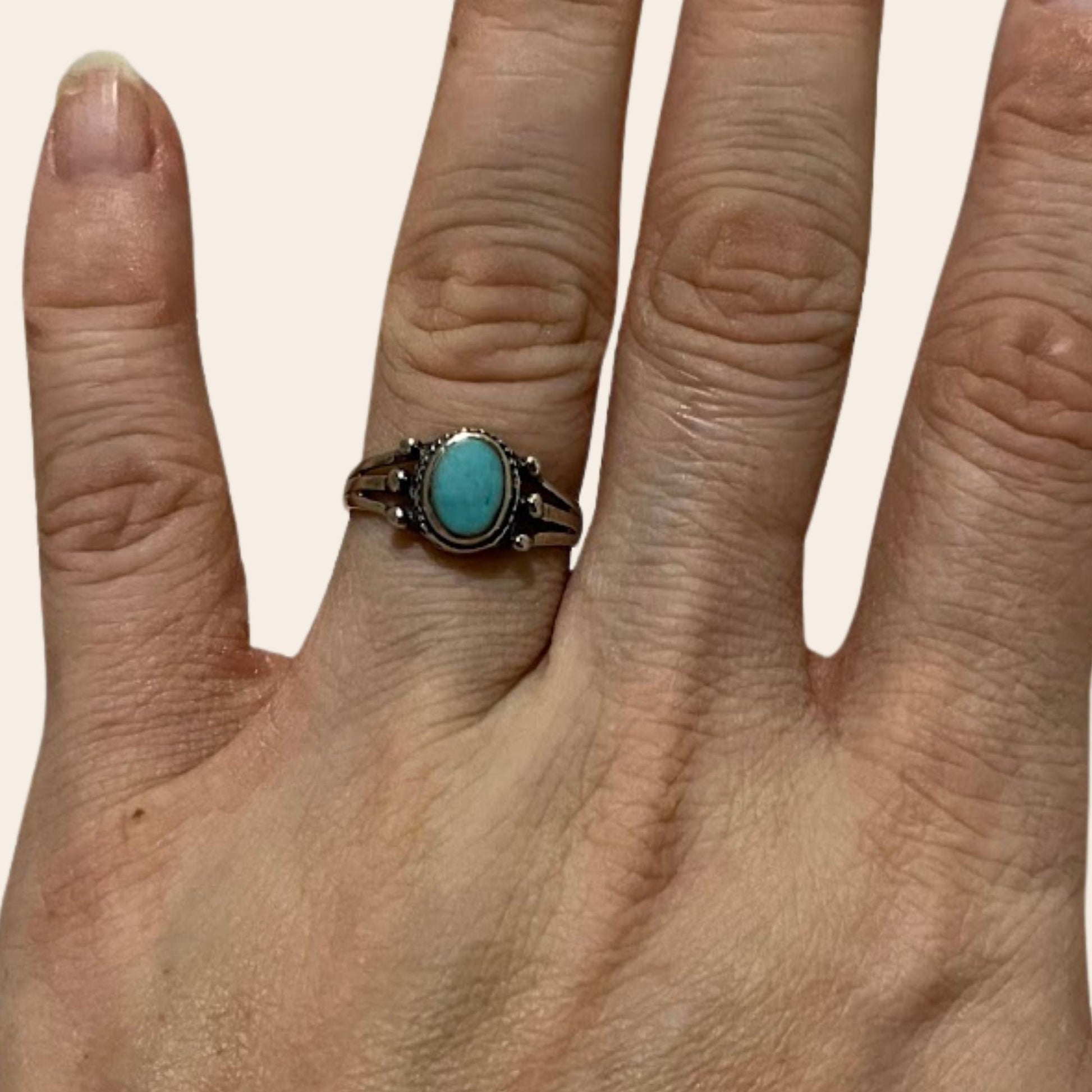 Vintage 1990s Sterling Silver Turquoise Ring | Split Shank | Size 6.5